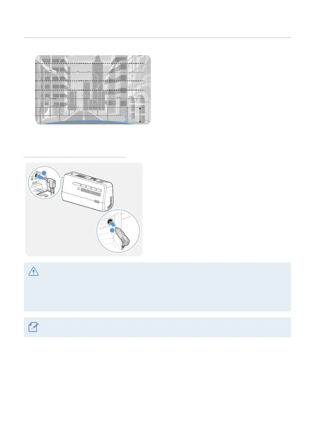 • For safe driving, arrange the cables to prevent the driver’s vision from being obstructed or interfering with