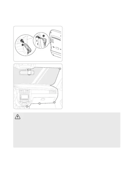 為確保駕駛安全性請妥善配置電源傳輸線以避免阻擋駕駛的視