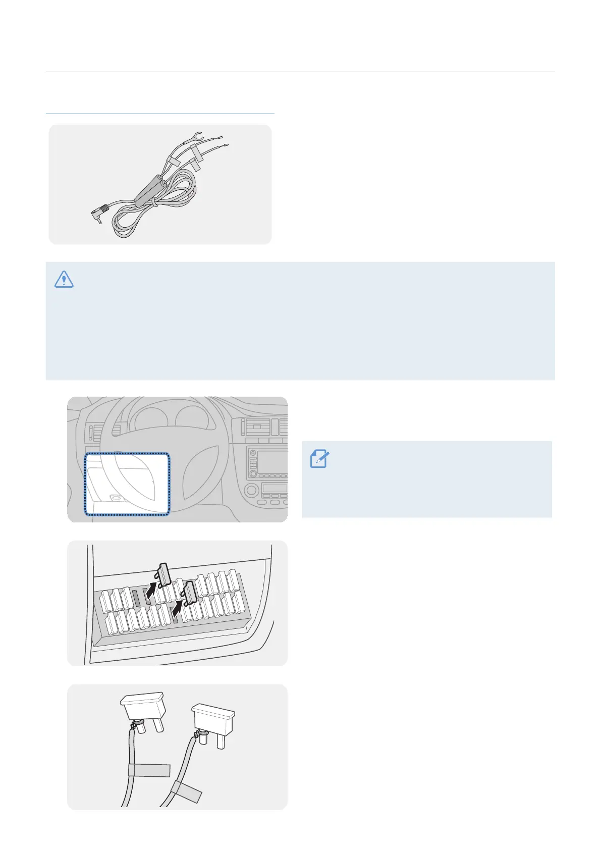 • The continuous power cable must be professionally installed in the vehicle by a trained mechanic. Contact