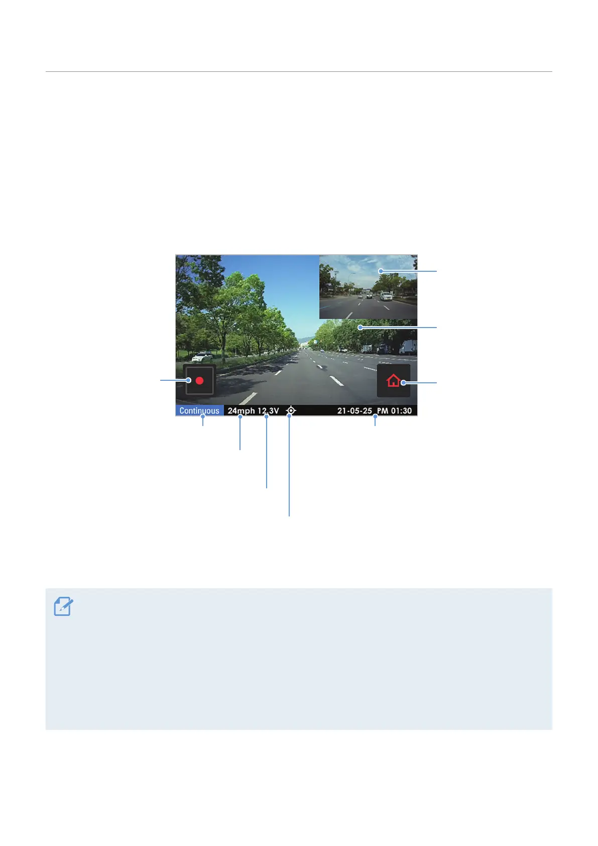 • The current driving speed will be displayed when the external GPS module (optional) is installed. For more