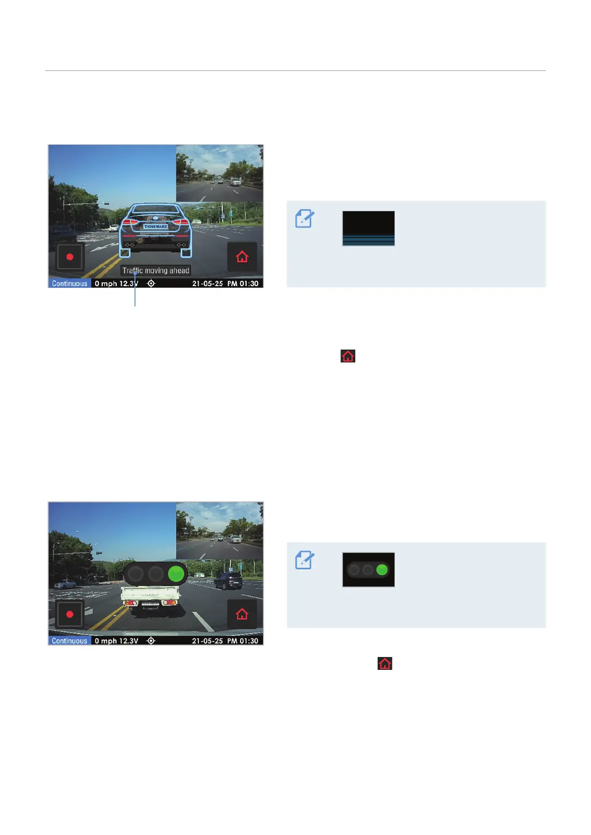 To deactivate the traffic light change alert feature, tap the Home menu ( ) button on the Live view screen
