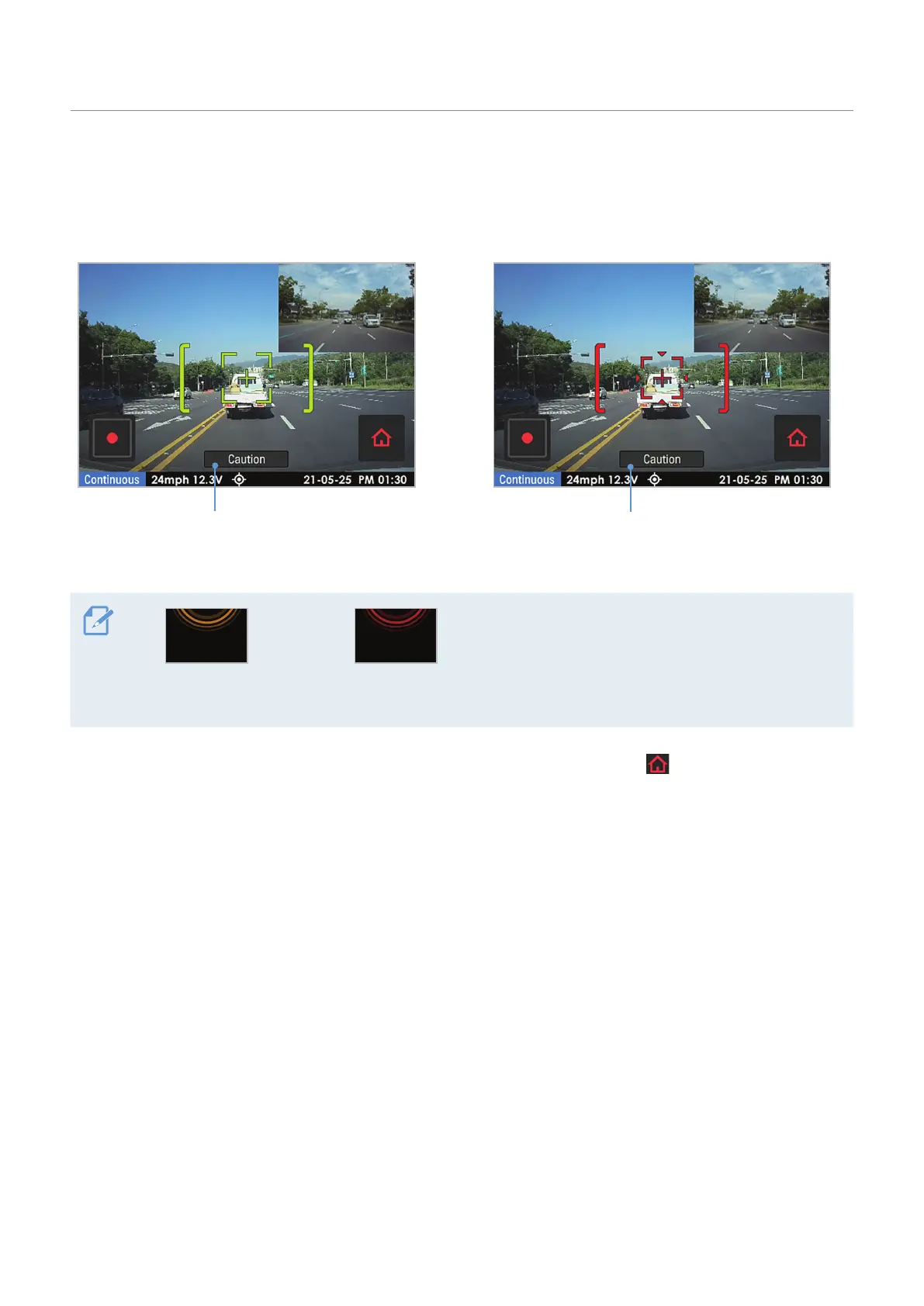 When the vehicle drives at 40 km/h or above, the FCWS will detect forward collision danger via the real-