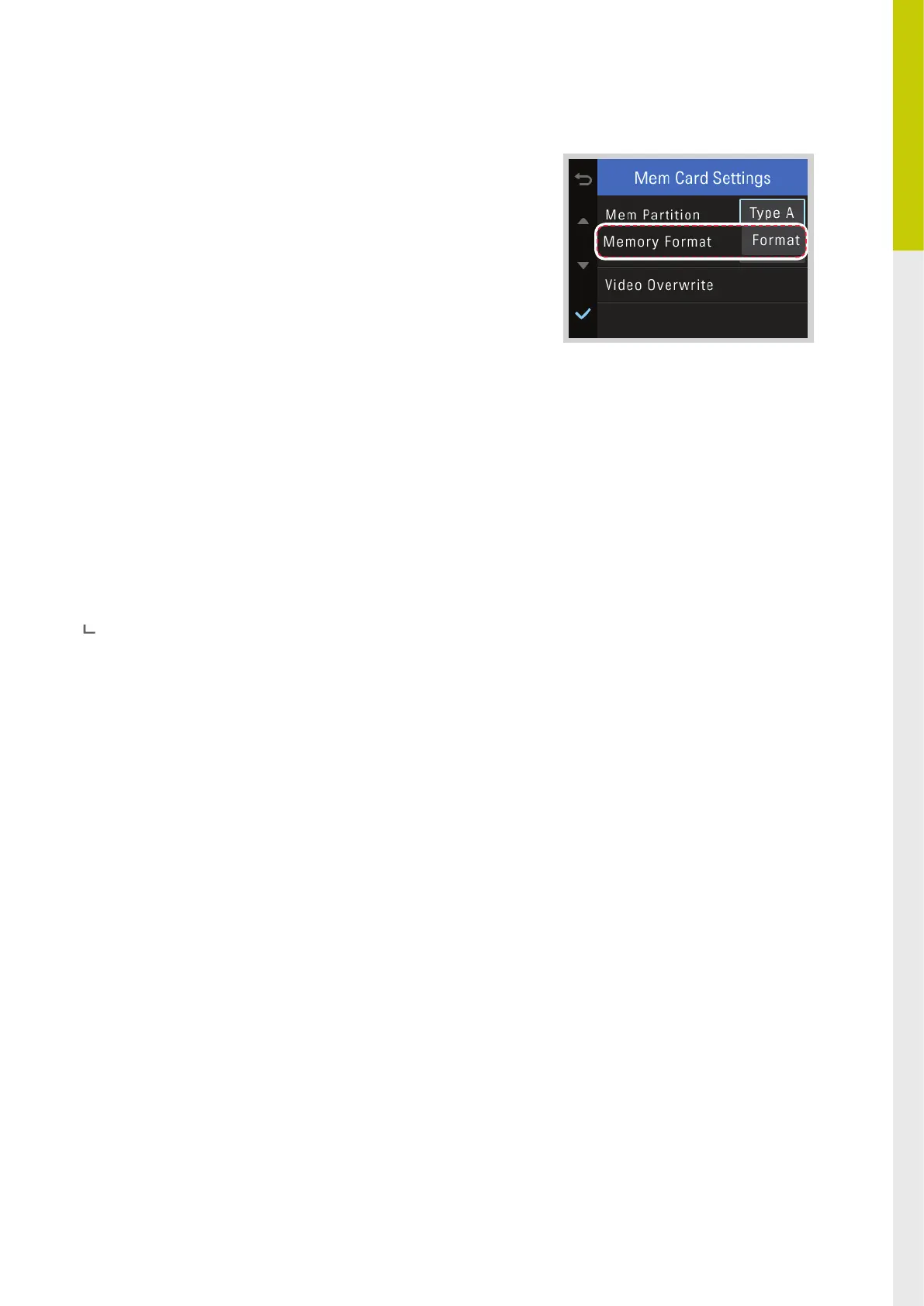 Select “Memory Card Format” menu located at "Mem Card Settings >