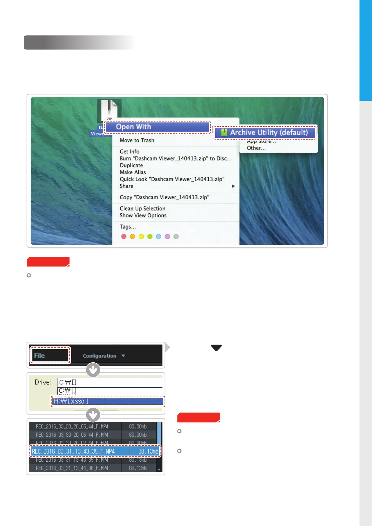 Right click on the mouse and select “Open With” > “Archive Utility” to launch the Thinkware Dash Cam