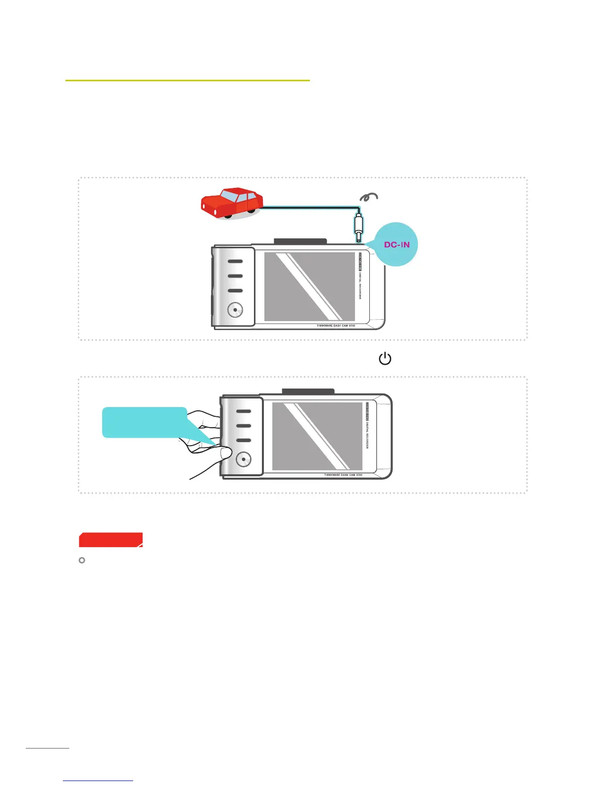 Once connected to the vehicle, the device will automatically turn on and o with vehicle ignition.