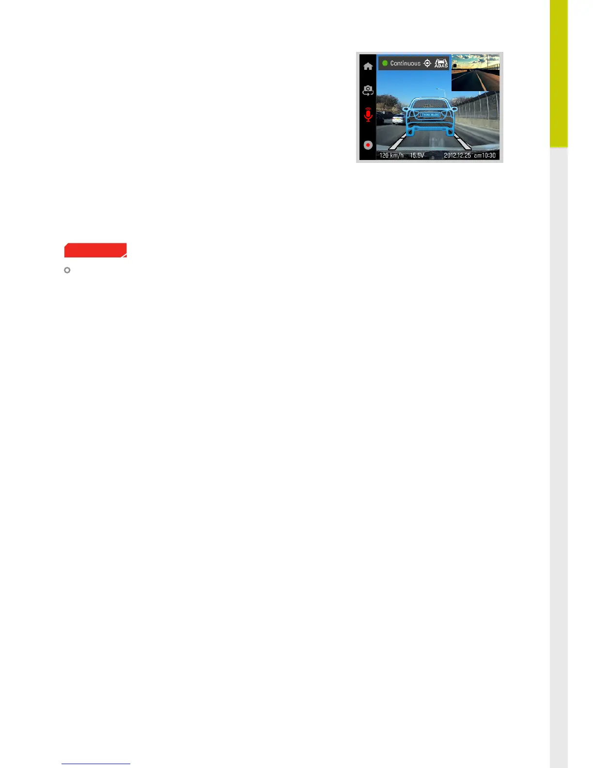 Driving at night, tunnels, heavy rain/snow, road surface conditions can aect accuracy of ADAS features.