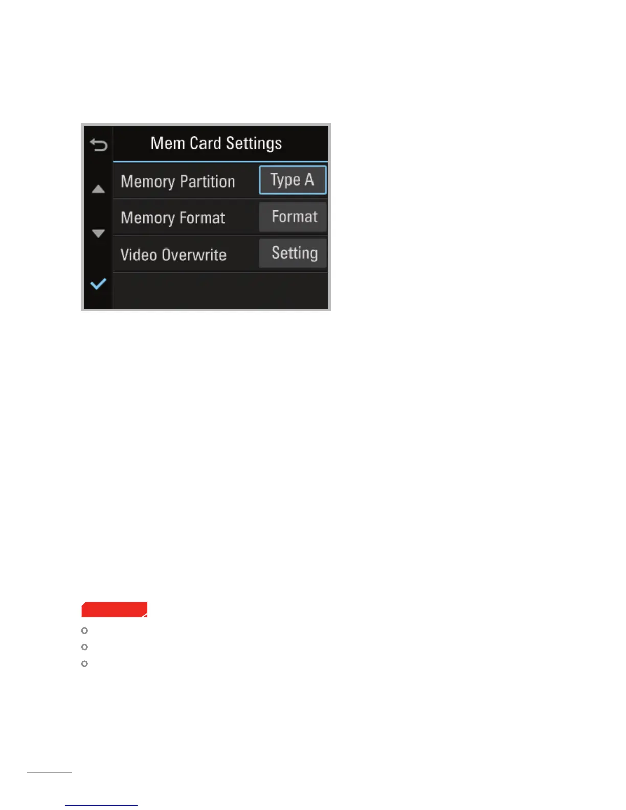 Memory Format : Formats the MicroSD card