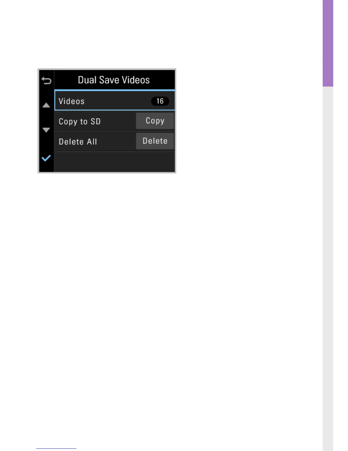Copy to SD : Copy all videos saved on the internal memory to MicroSD card