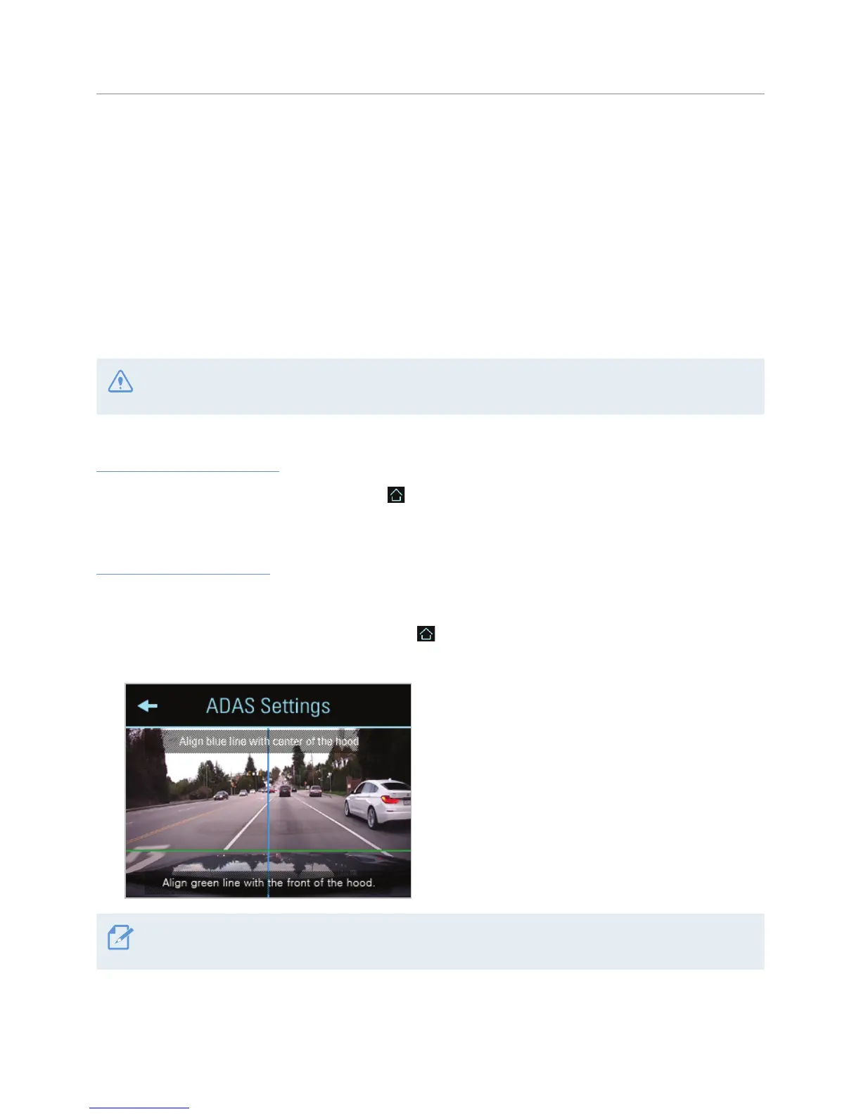 To enhance the ADAS accuracy, follow the instructions to calibrate the ADAS settings screen.