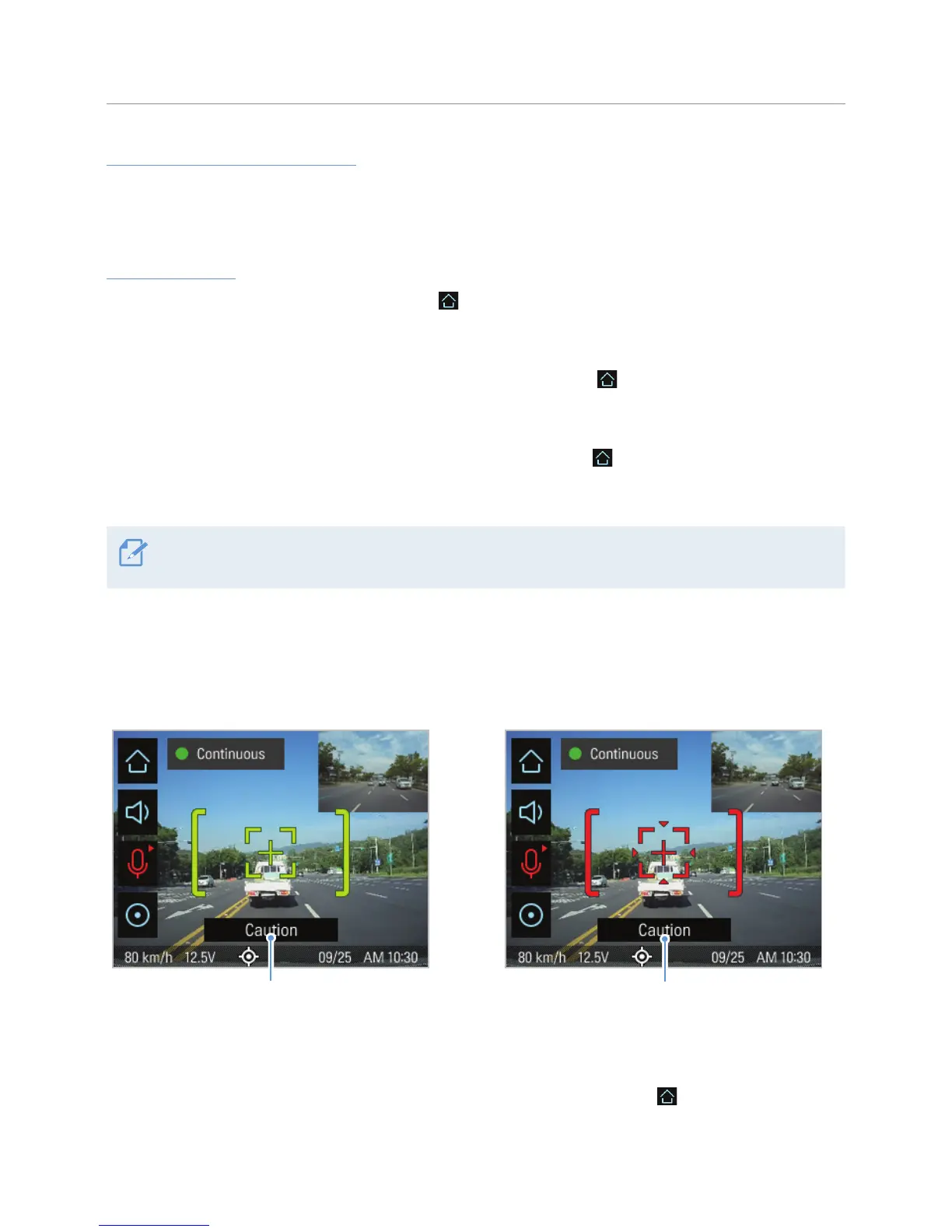 • To change the lane departure detection speed, tap the Home button (