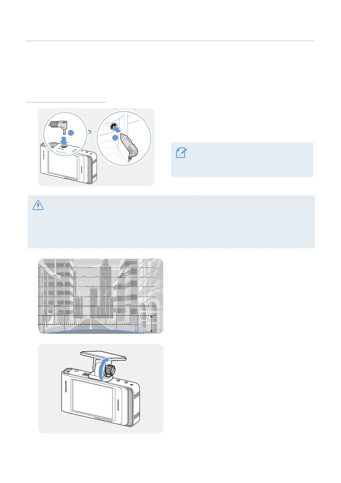 • Use the authentic THINKWARE car charger. Use of third party power cables may damage the product and