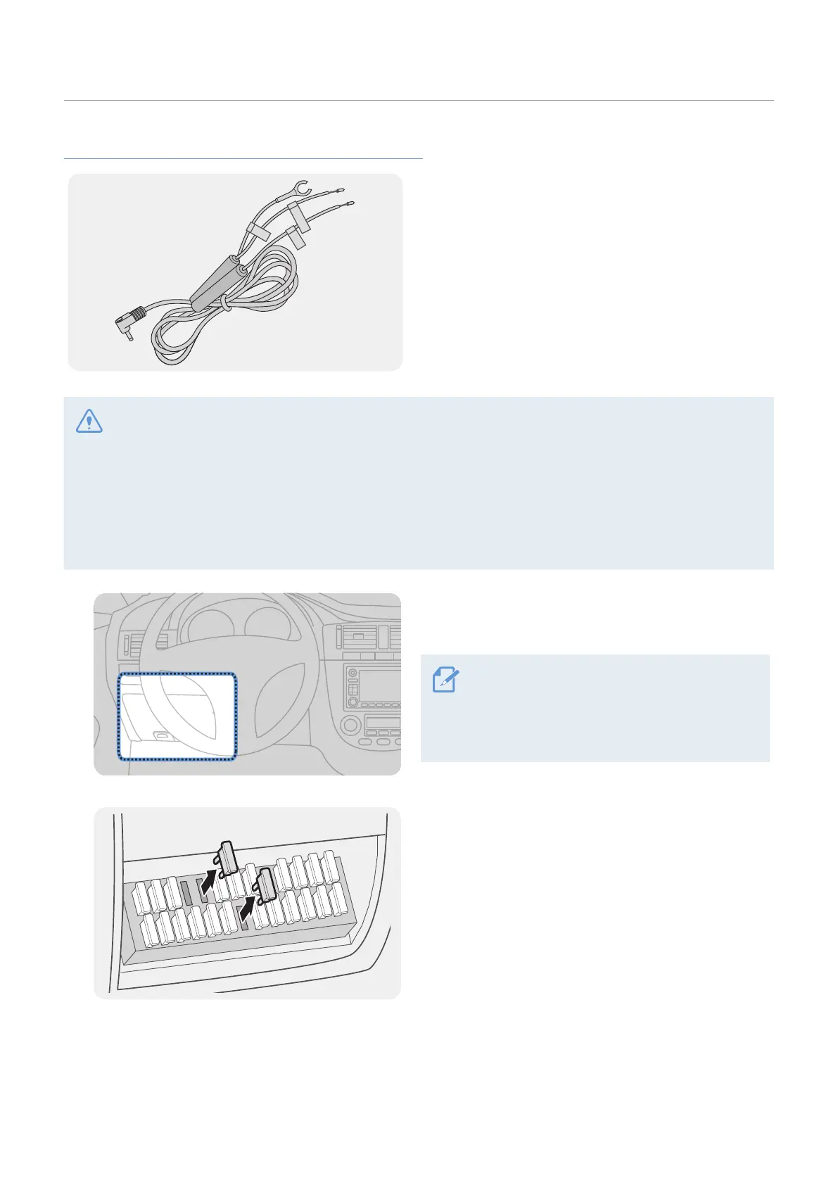 • Use the authentic THINKWARE continuous power cable only. Using other manufacturer’s cable may