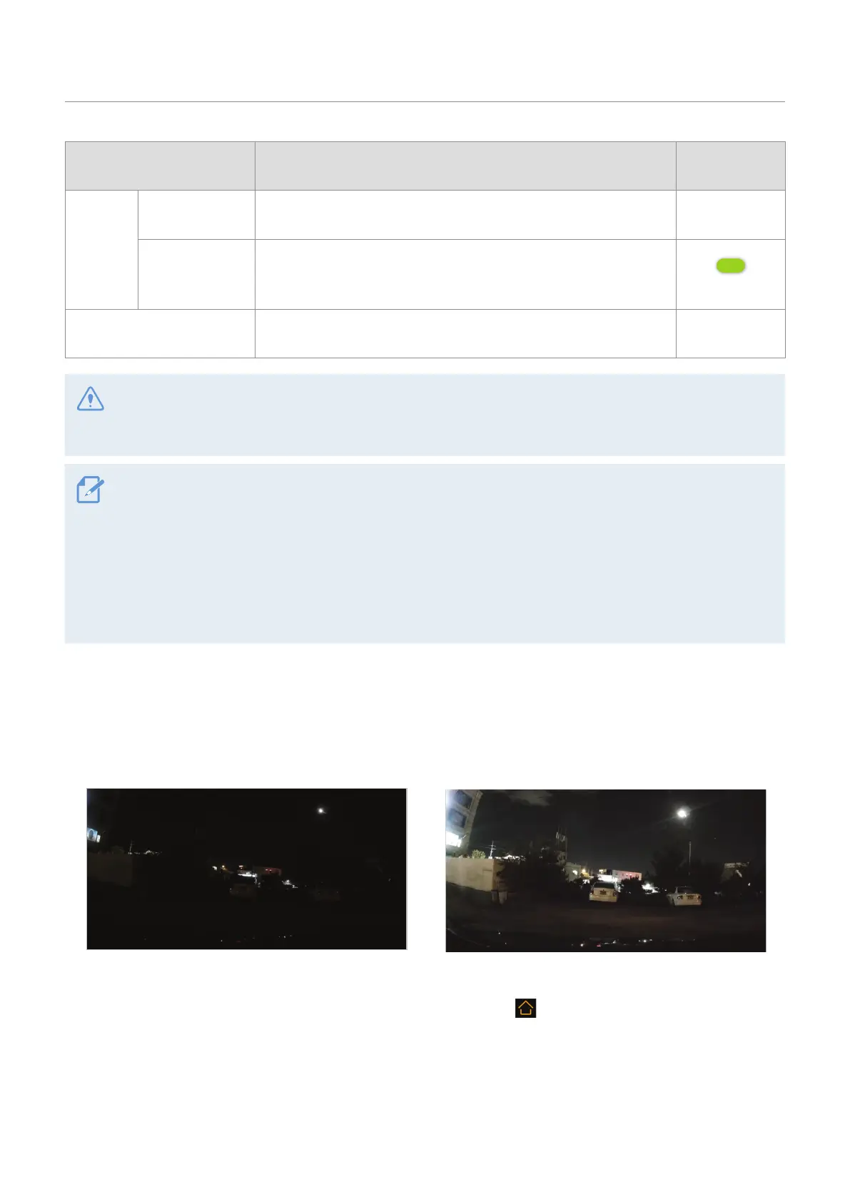 • You can record bright and high resolution videos while parking at night by activating the Super night vision