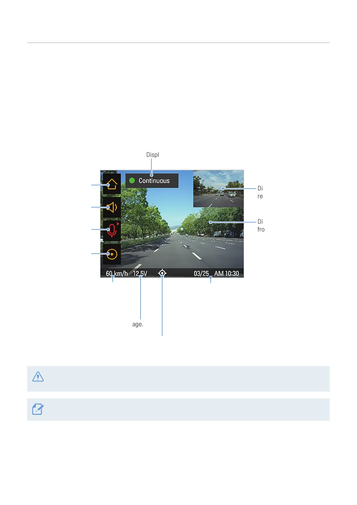 The followings are layout descriptions of the live view and home screens.
