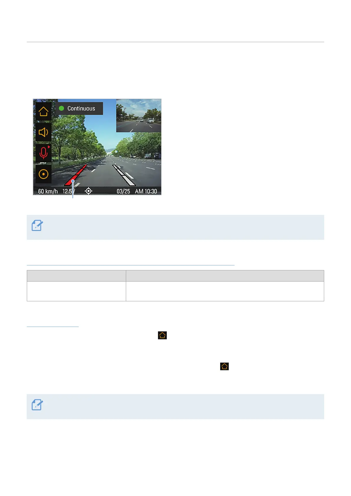 • To change the lane departure detection speed, tap the Home menu ( ) button on the Live view screen