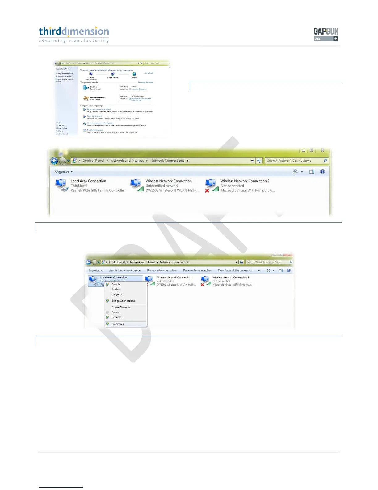 Right click on the Local Area Connection icon to gain access to the properties manager for this connection. Click on Properties’