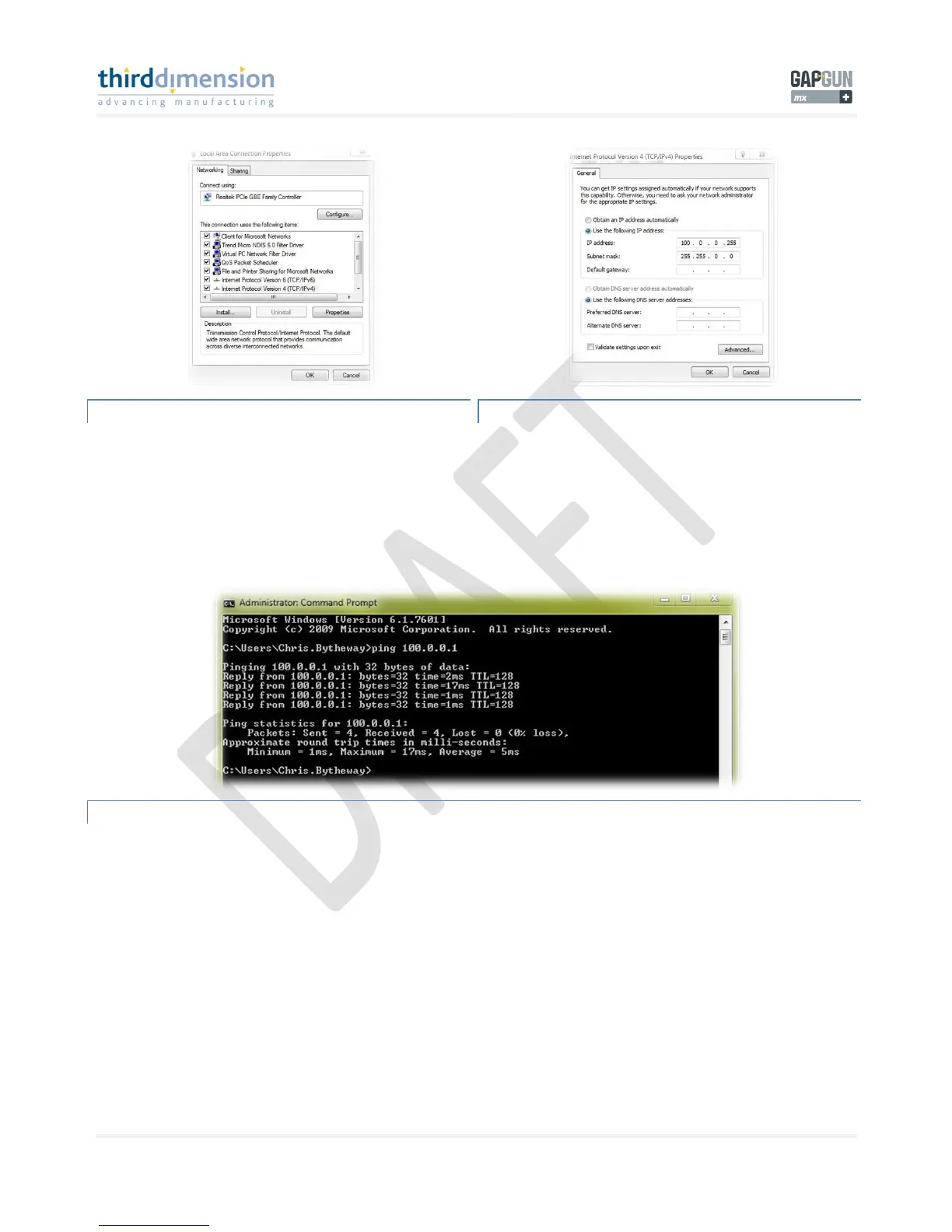 IP address = 100.0.0.255 (Same as GapGun Server settings)