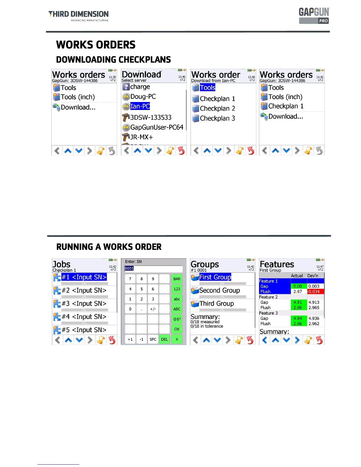 3. Selecting the checkplan downloads it to the GapGun where it becomes a Works Order.