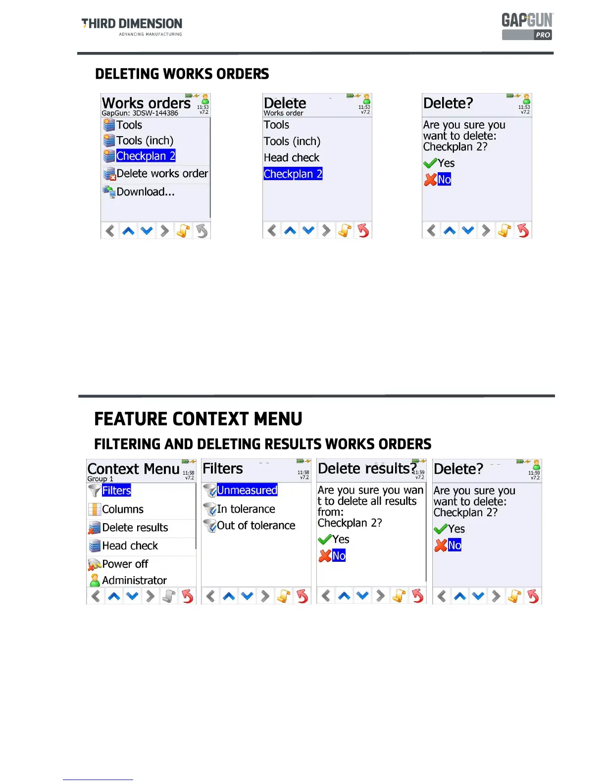 Delete works order allows the Administrator to delete the whole Works order from the GapGun.