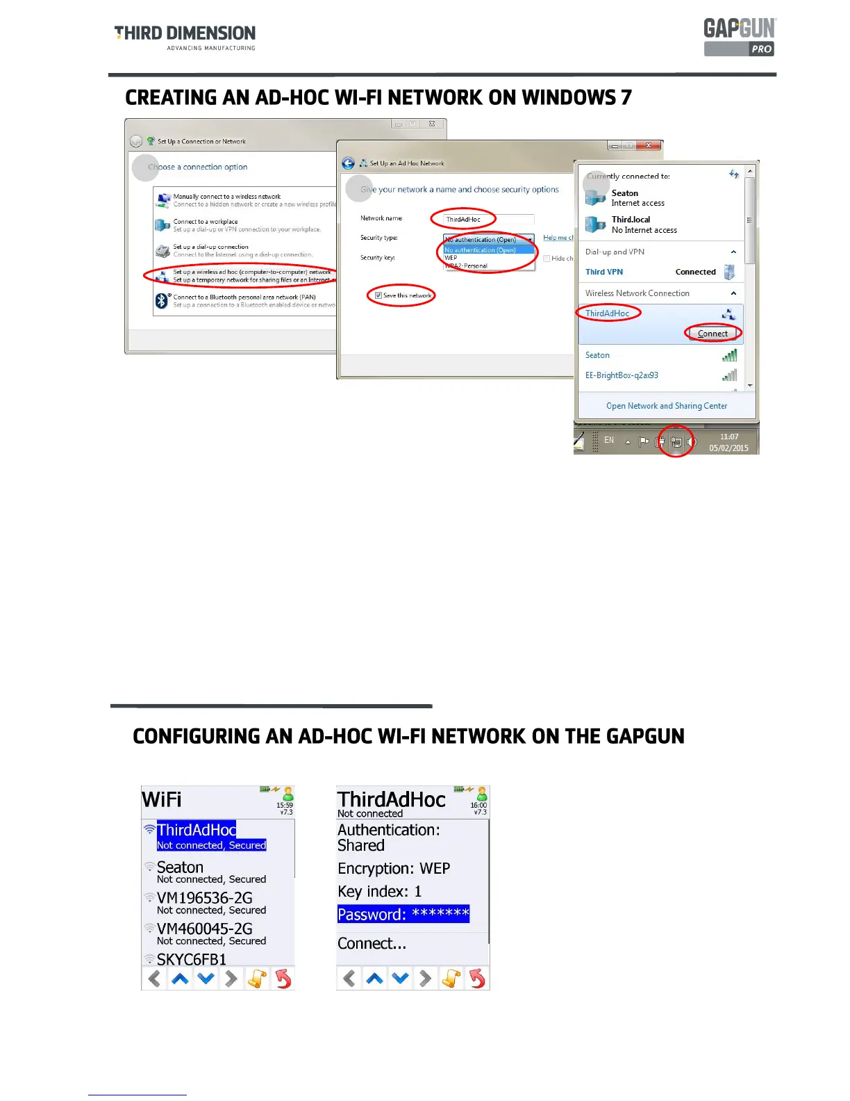 Ad-Hoc Wi-Fi network between the PC and the GapGun. To do this an Ad-Hoc