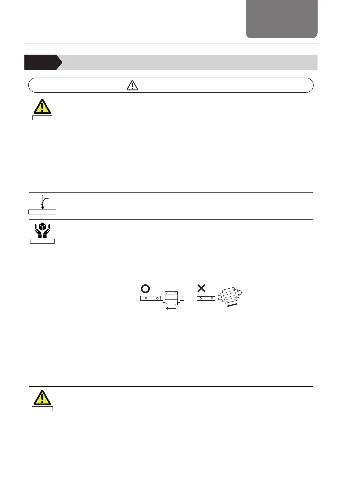 LM block may become detached from the LM rail and fall down. If an LM Guide will be used in