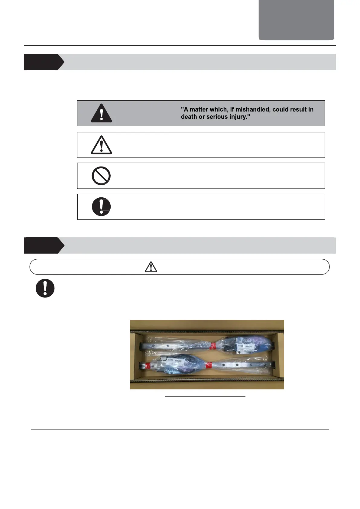 This manual uses the following safety related warning displays. Descriptions containing safety
