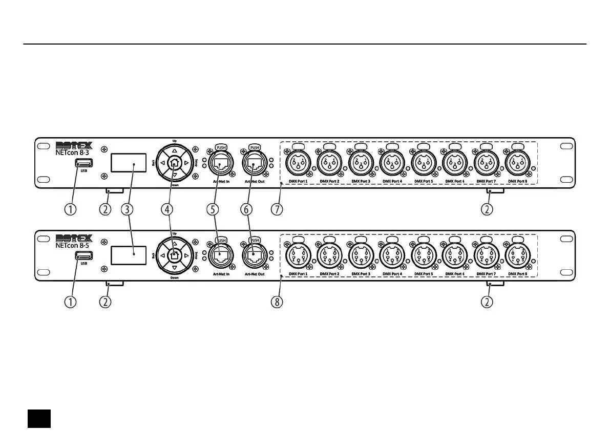 thomann Botex NETcon 8-3 - Connections and Controls Overview; Front Panel Identification (NETcon 8-3;8-5)