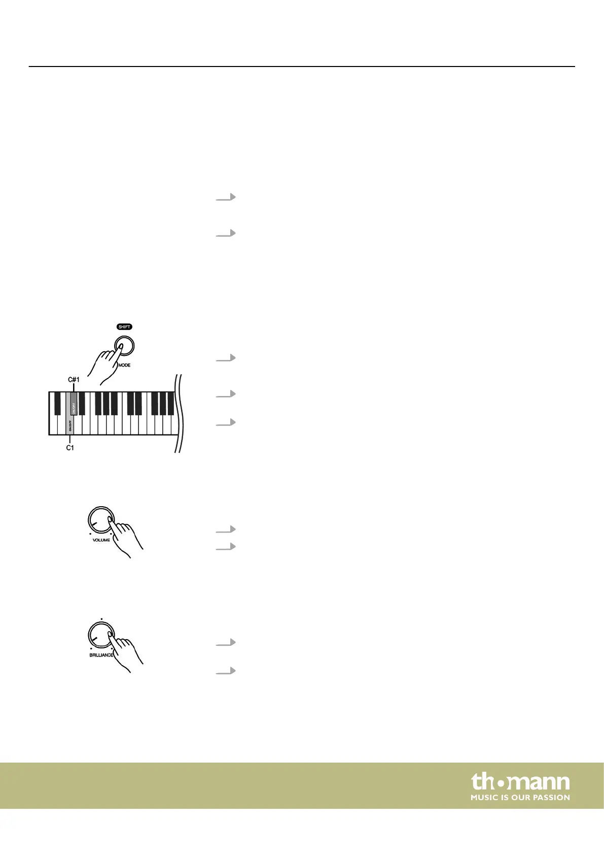 1. Turn the [BRILLIANCE] control clockwise to adjust the treble for the entire key‐