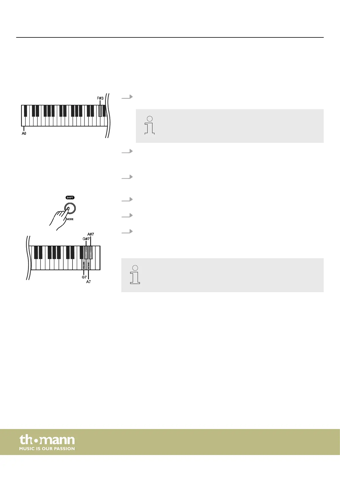 4. Hold down [SHIFT] and press the piano keys [A7] or [A#7] to set the octave shift