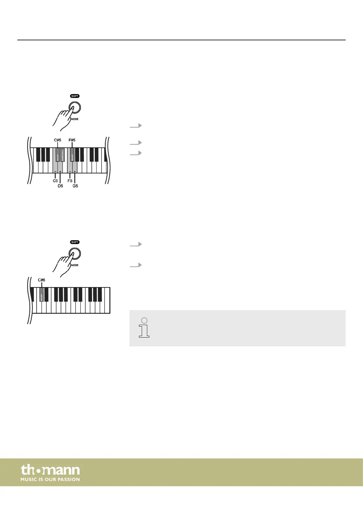 1. Hold down [SHIFT] and turn on the desired eect with the piano key [C#5]