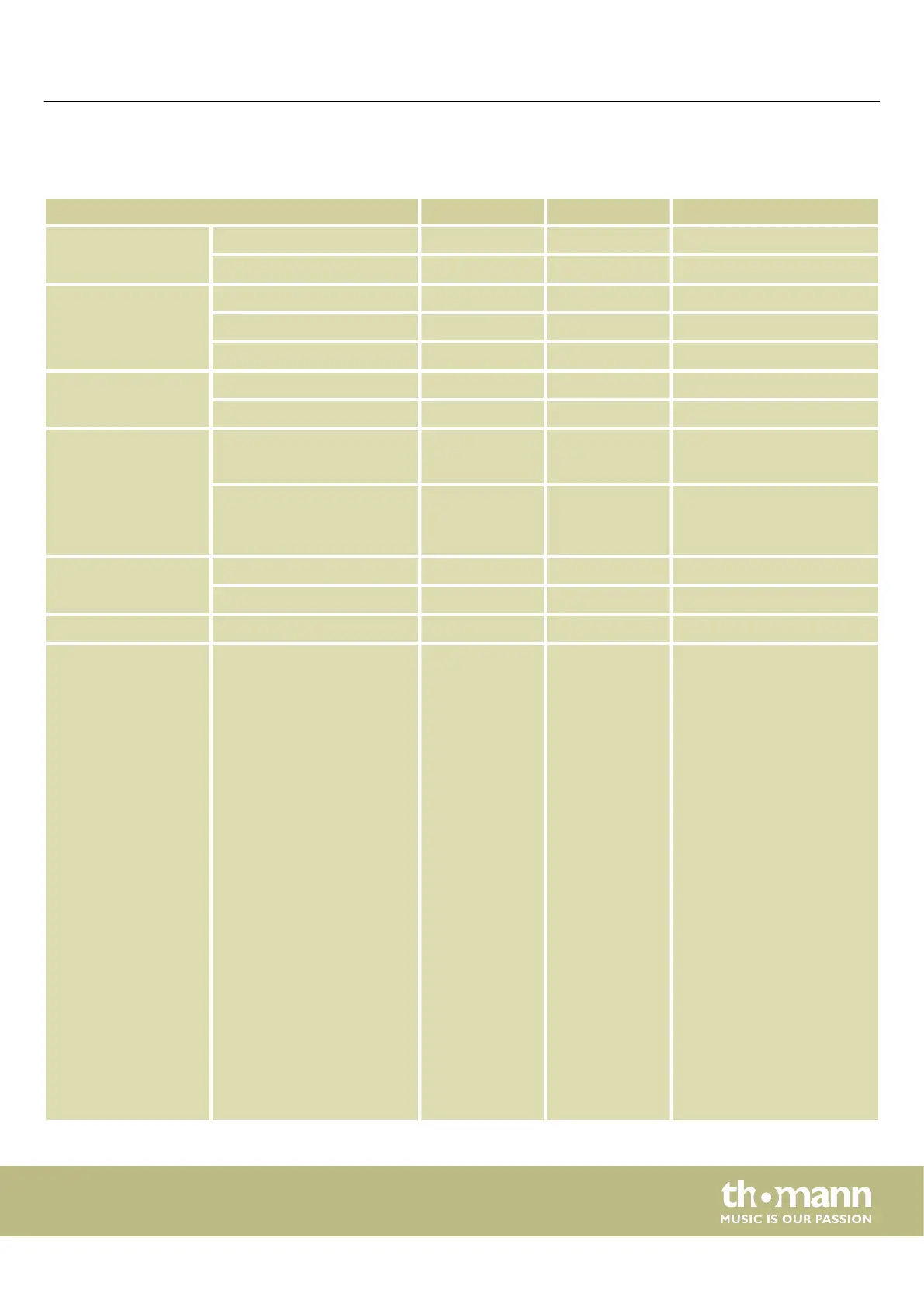 MIDI implementation chart