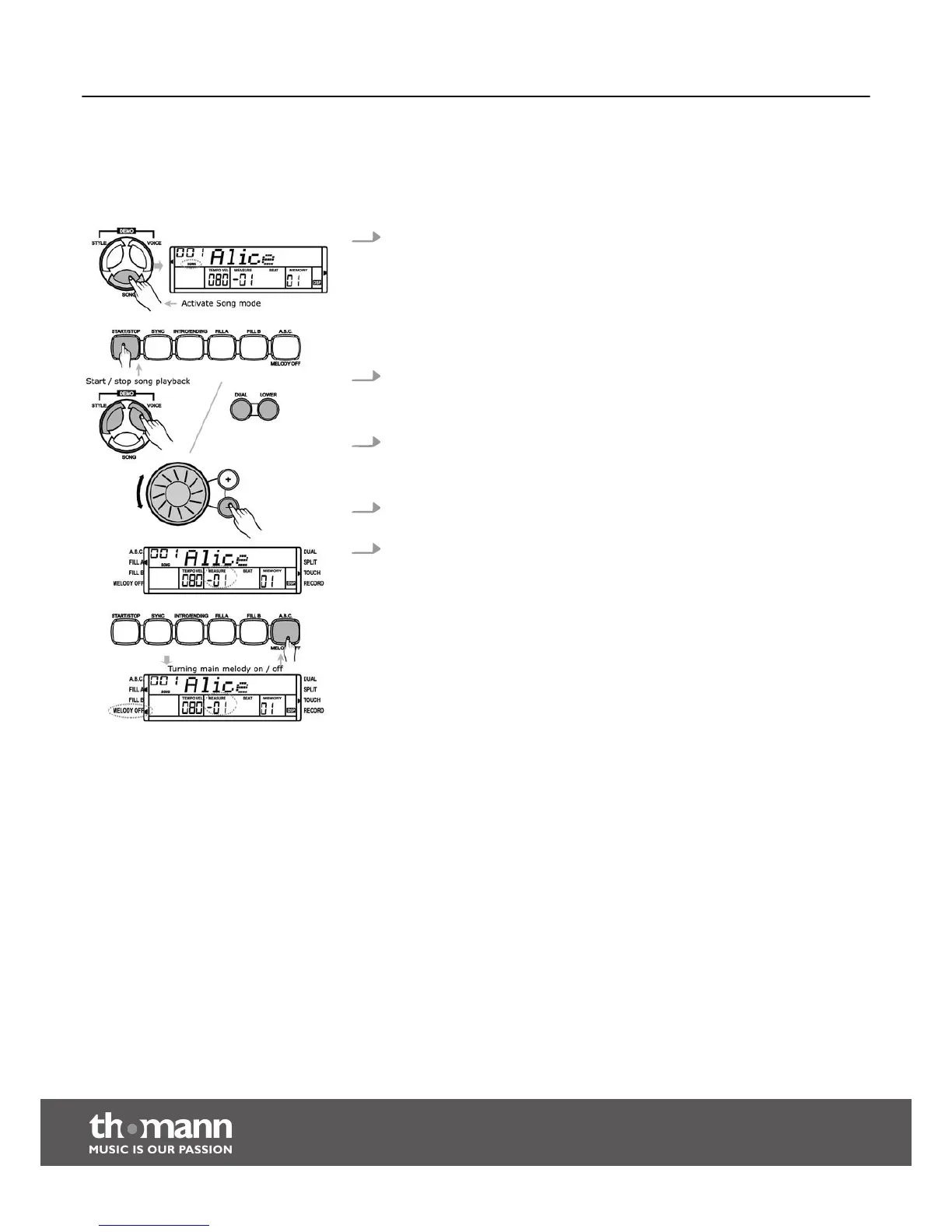 5. Press the [MELODY OFF] button to mute the right hand voice. ‘MELODY OFF’