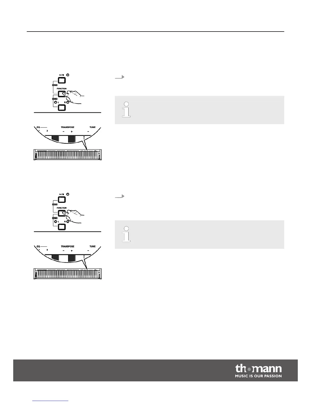 With this function you can adjust the pitch of the keyboard in 12 semitone steps up