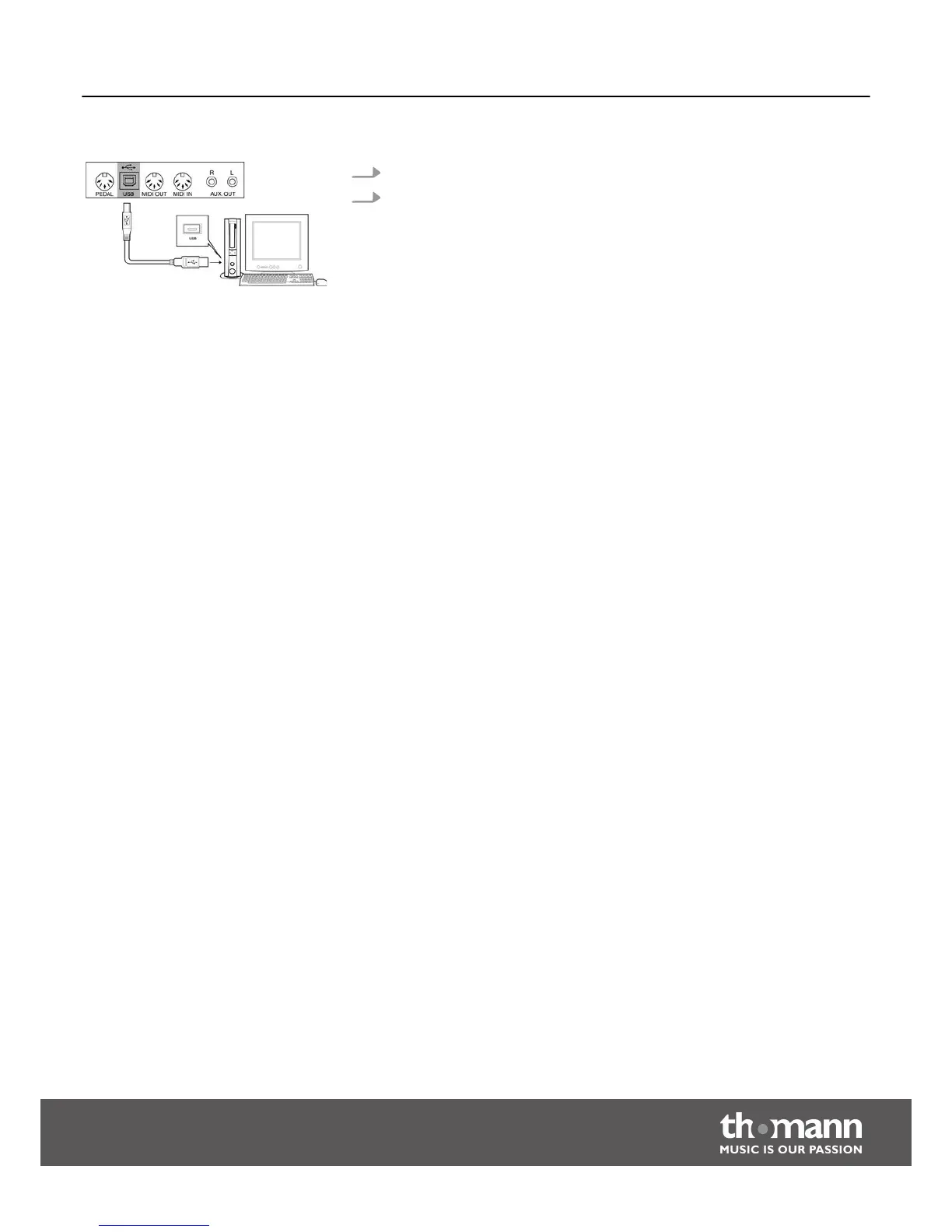 2. The USB port is an integrated MIDI-USB adapter. For devices with USB cable,