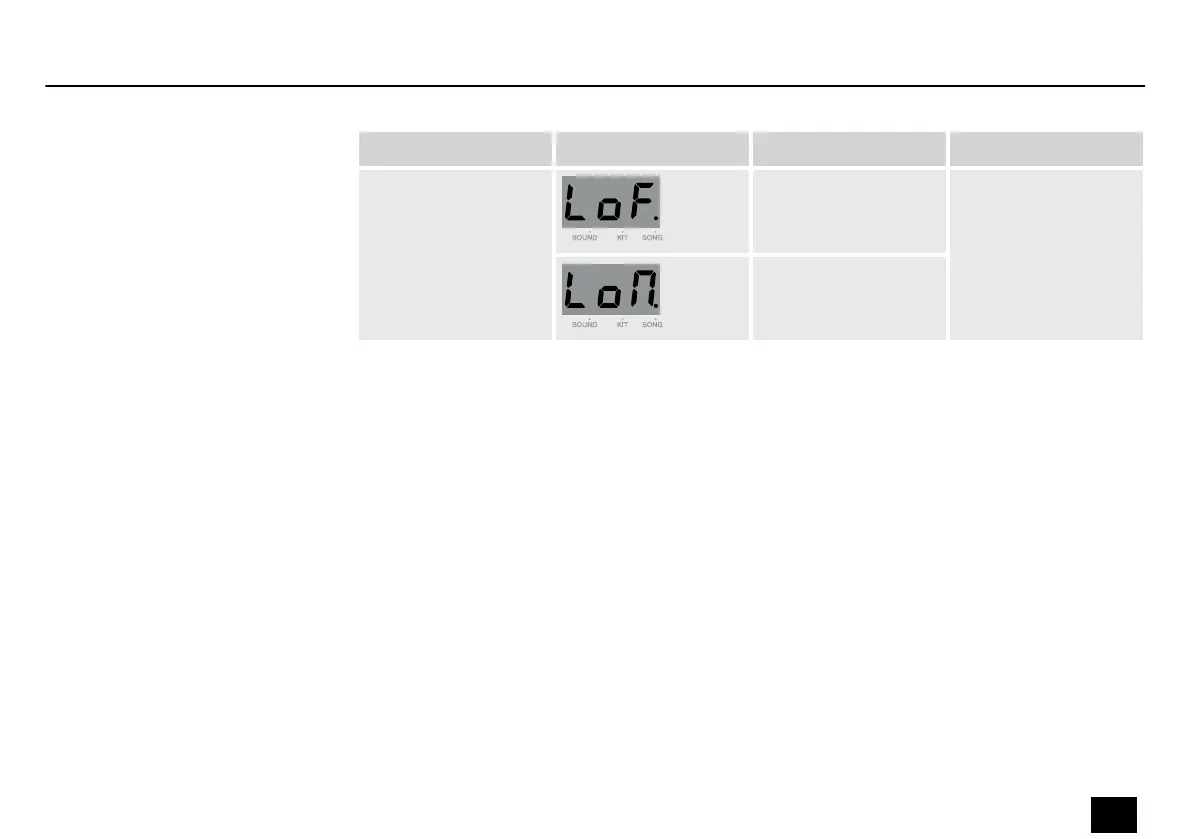 Press [DRUM OFF] to mute the drums in the current song. The indicator in the button lights up.