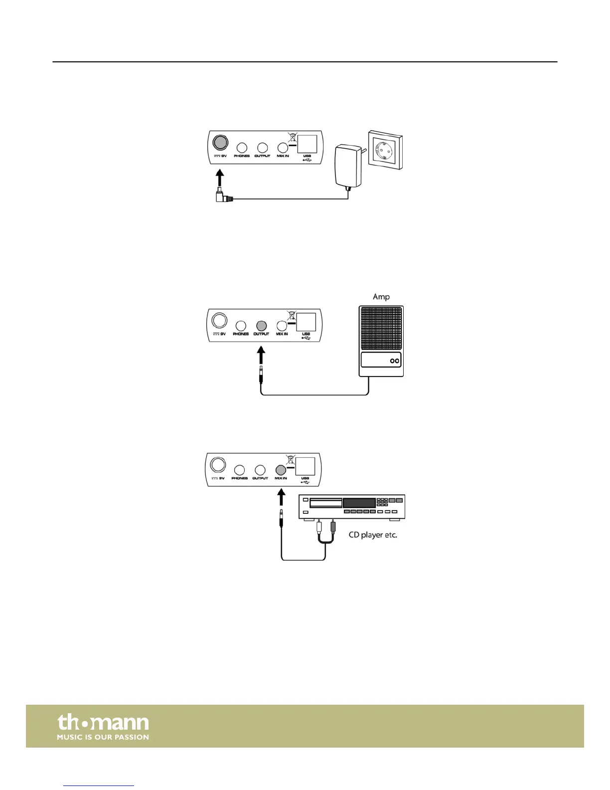 If you want to listen to the drum voices using an amplifier, connect the input of the amp to the OUTPUT jacks on the rear panel.