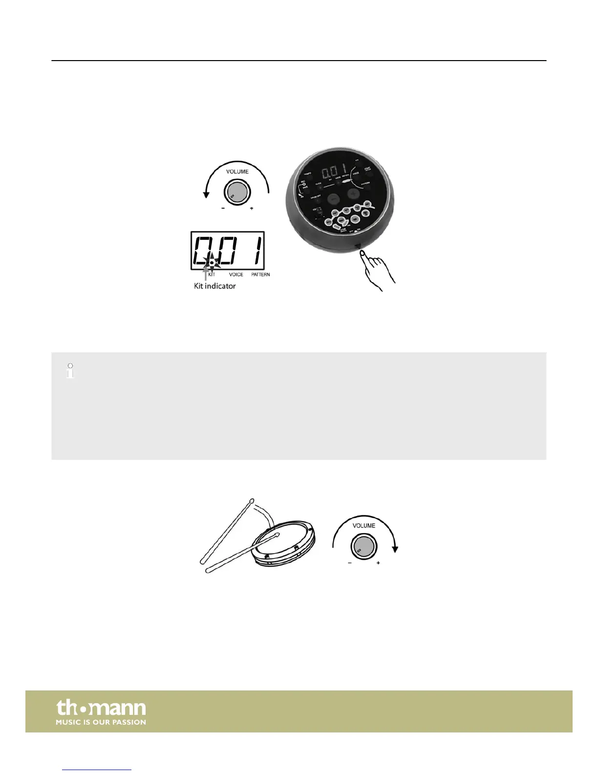 While hitting a pad, gradually rotate the volume knob until a comfortable volume level is reached.
