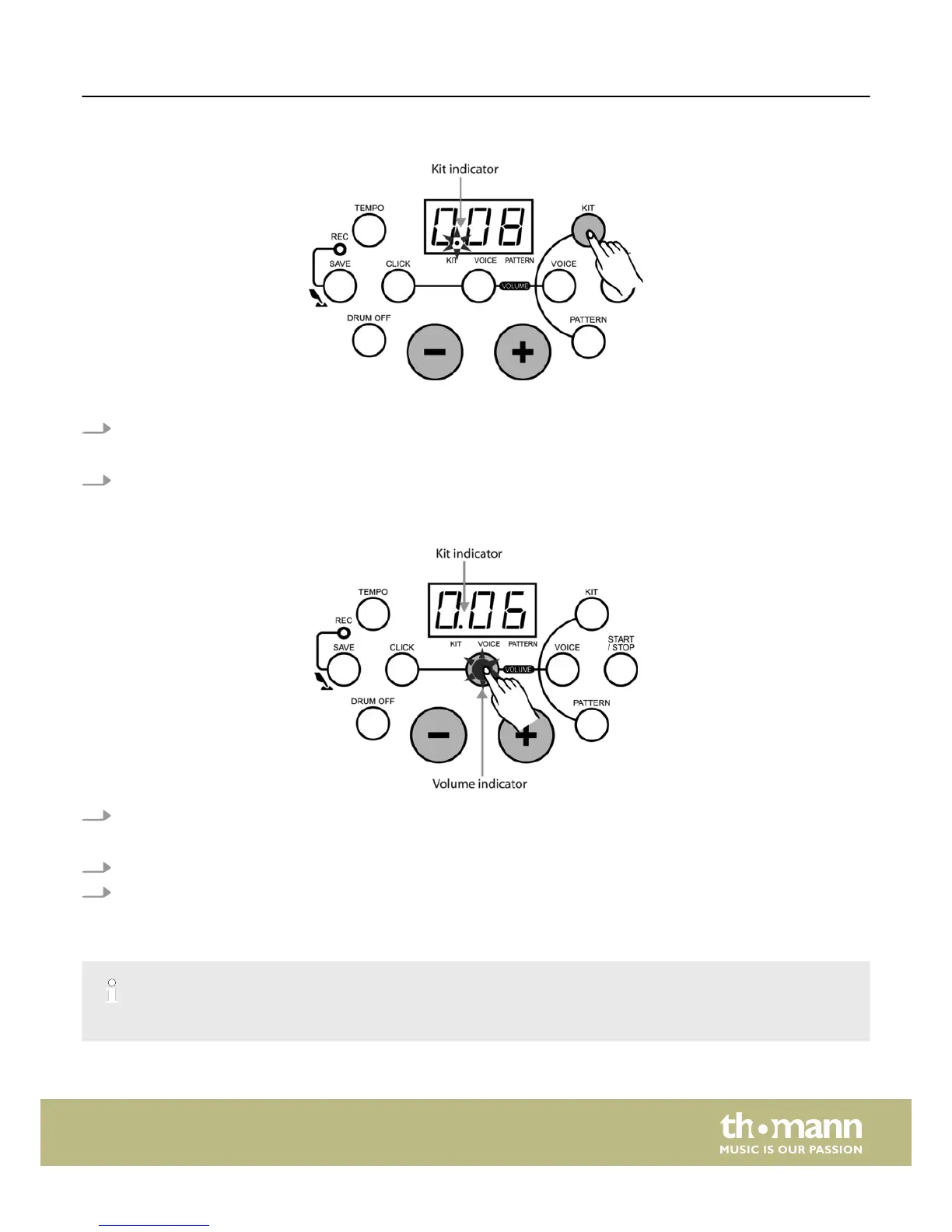 1. In KIT selecting mode, press the [VOLUME] button to enter volume adjusting mode.