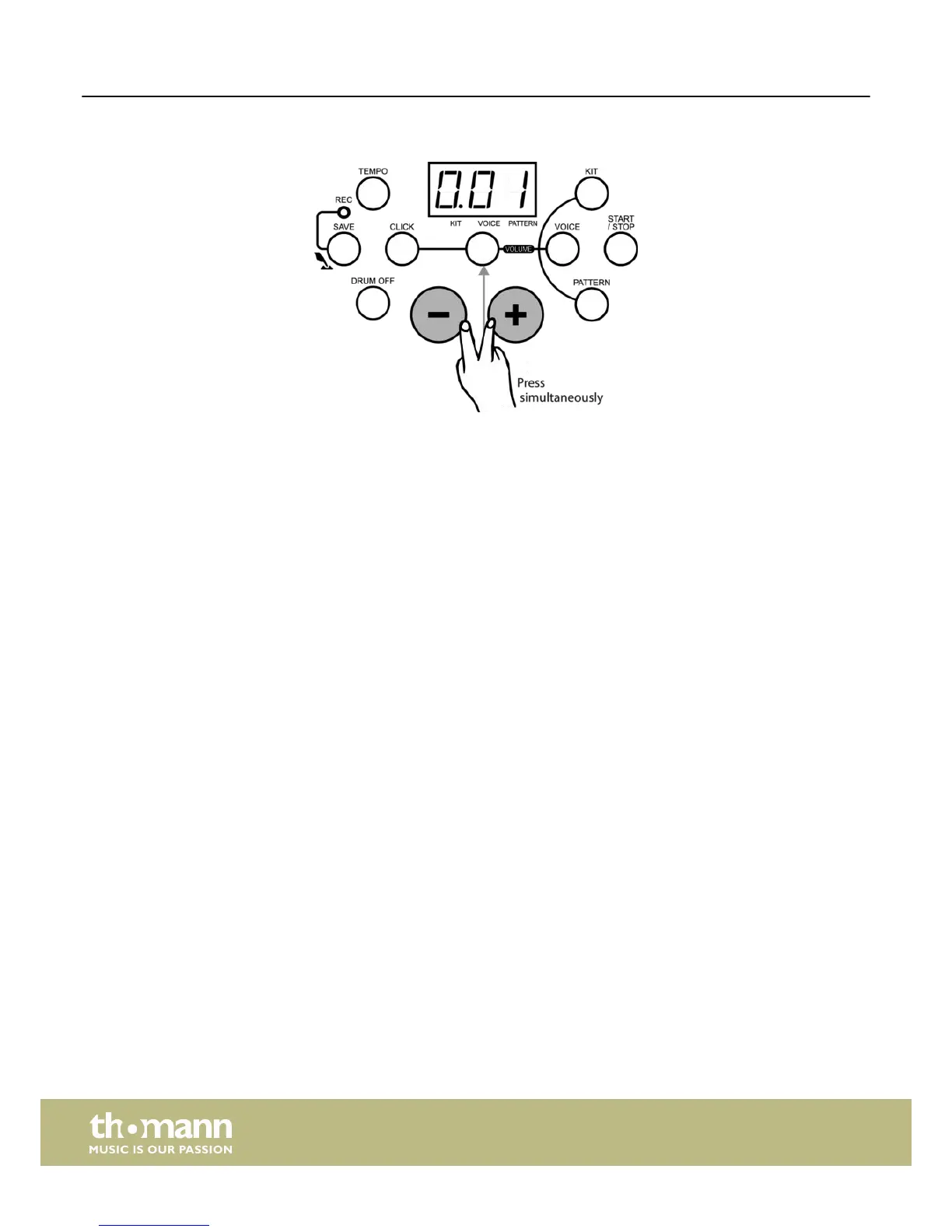 If you keep both [+] and [–] buttons pressed at the same time when turning the drum module on, it will be reset to the factory