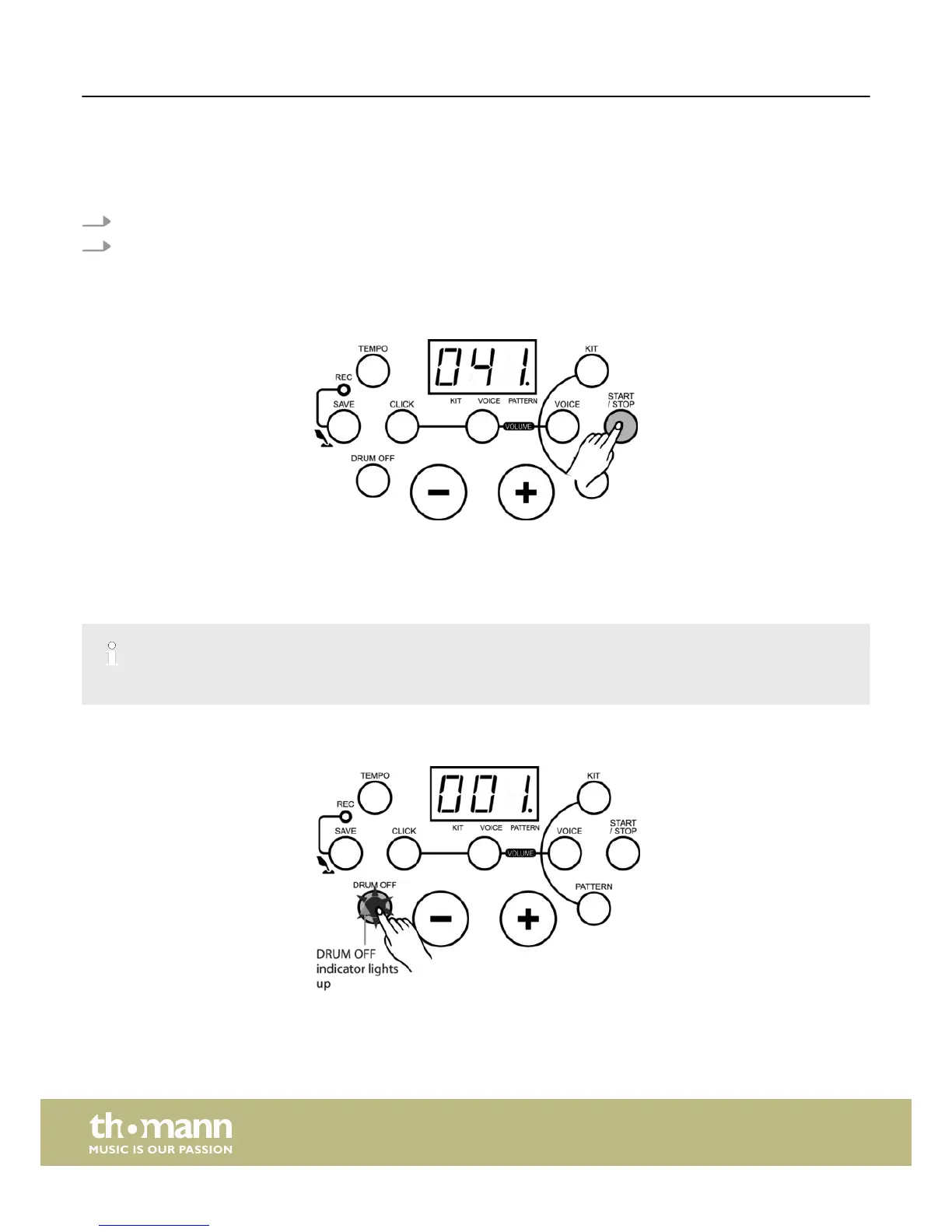 n If you press the [DRUM OFF] button only the accompaniment will be muted, but not the recorded part.