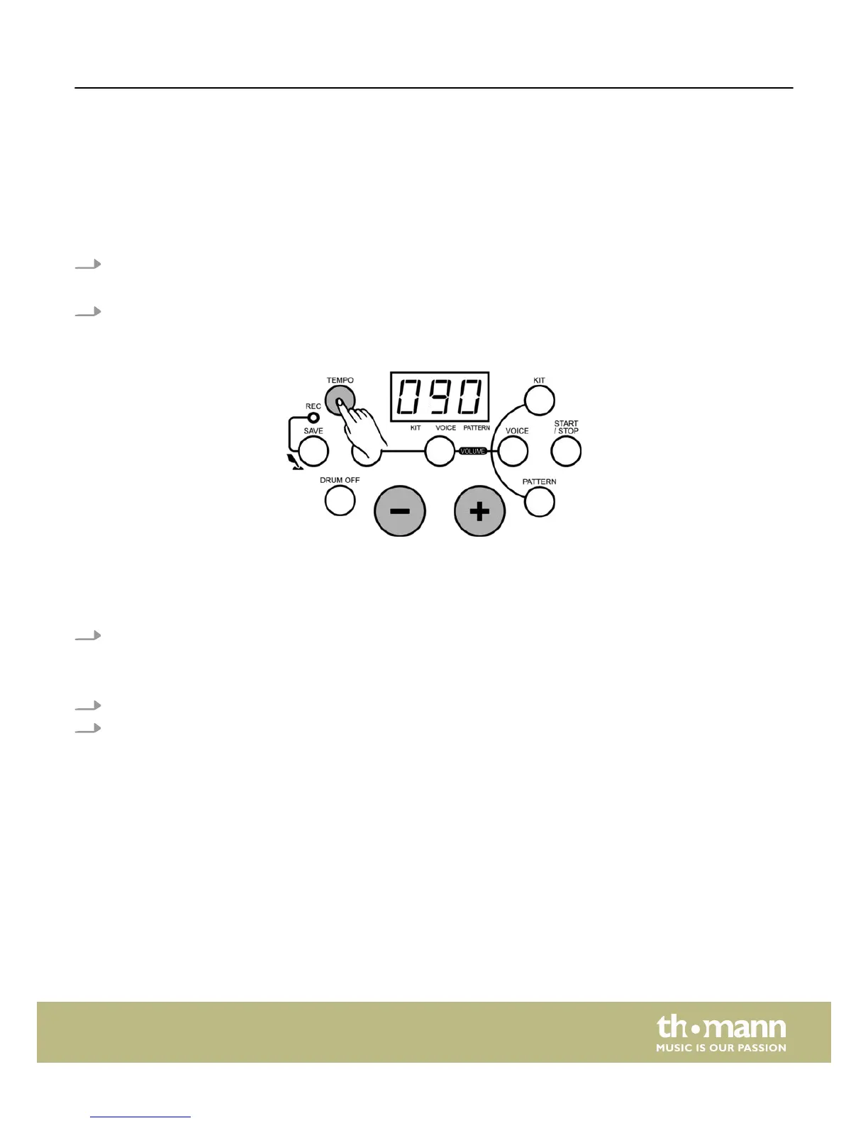 2. Press the [+/–] buttons to adjust the tempo for the metronome and pattern playback (30-280).