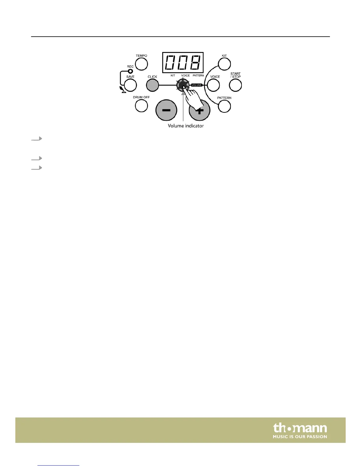 1. In click time signature selecting mode press the [VOLUME] button to adjust the click volume.