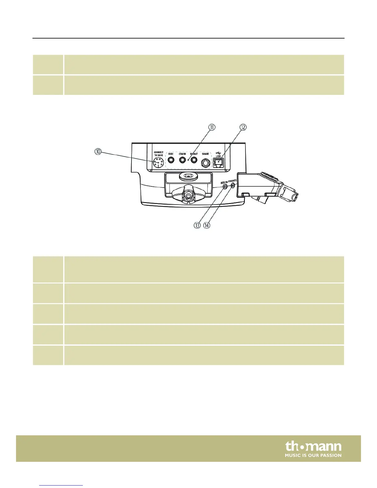 11 Trigger input jacks for RIDE, CRASH, HI-HAT and SNARE