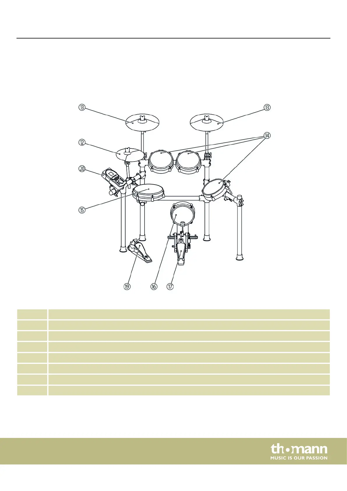 14 Tom pad 1 (8 inch), tom pad 2 (8 inch)