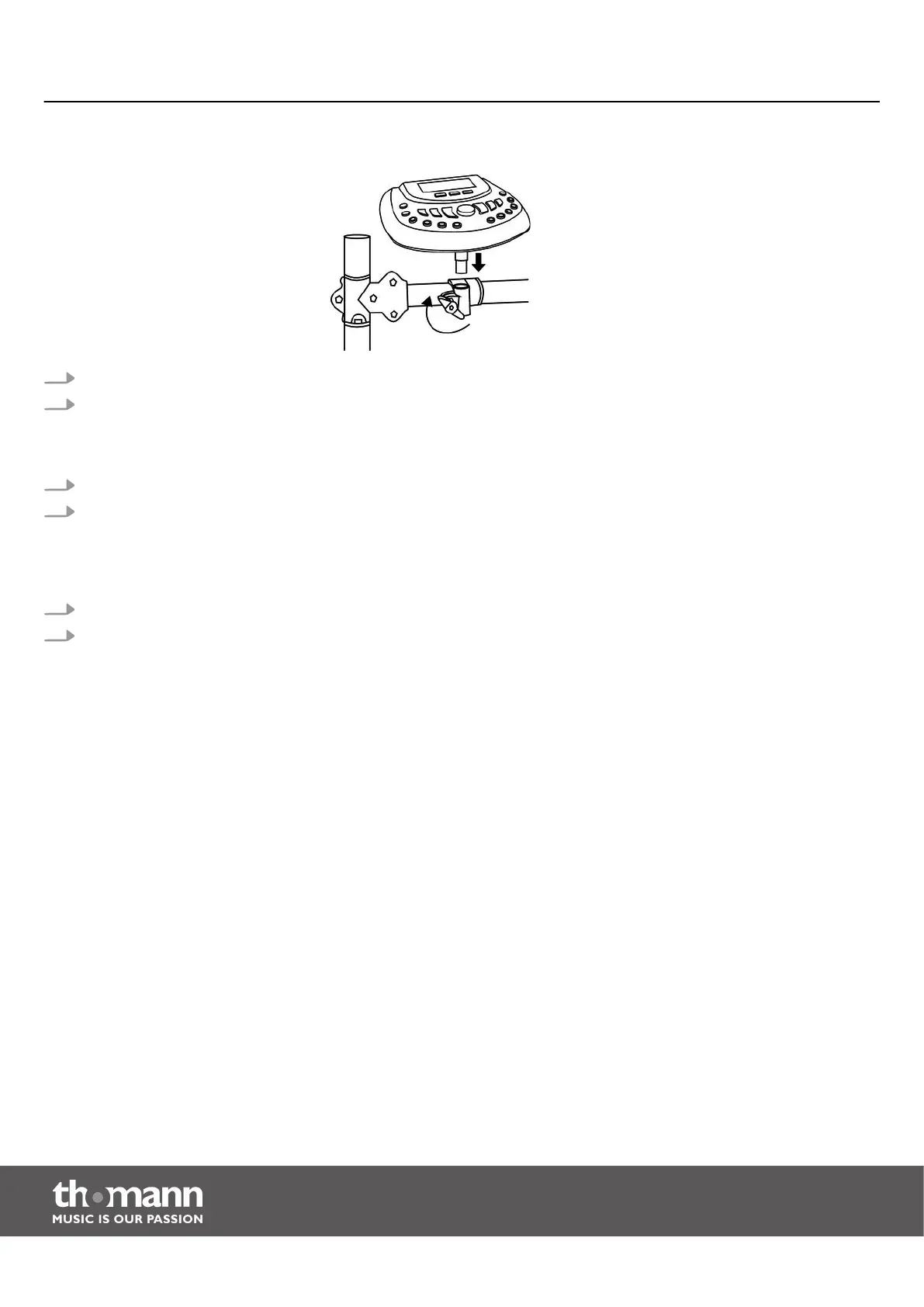 1. Position the bass drum pad centred under the rack. Position the bass drum pedal centred in front of the pad.
