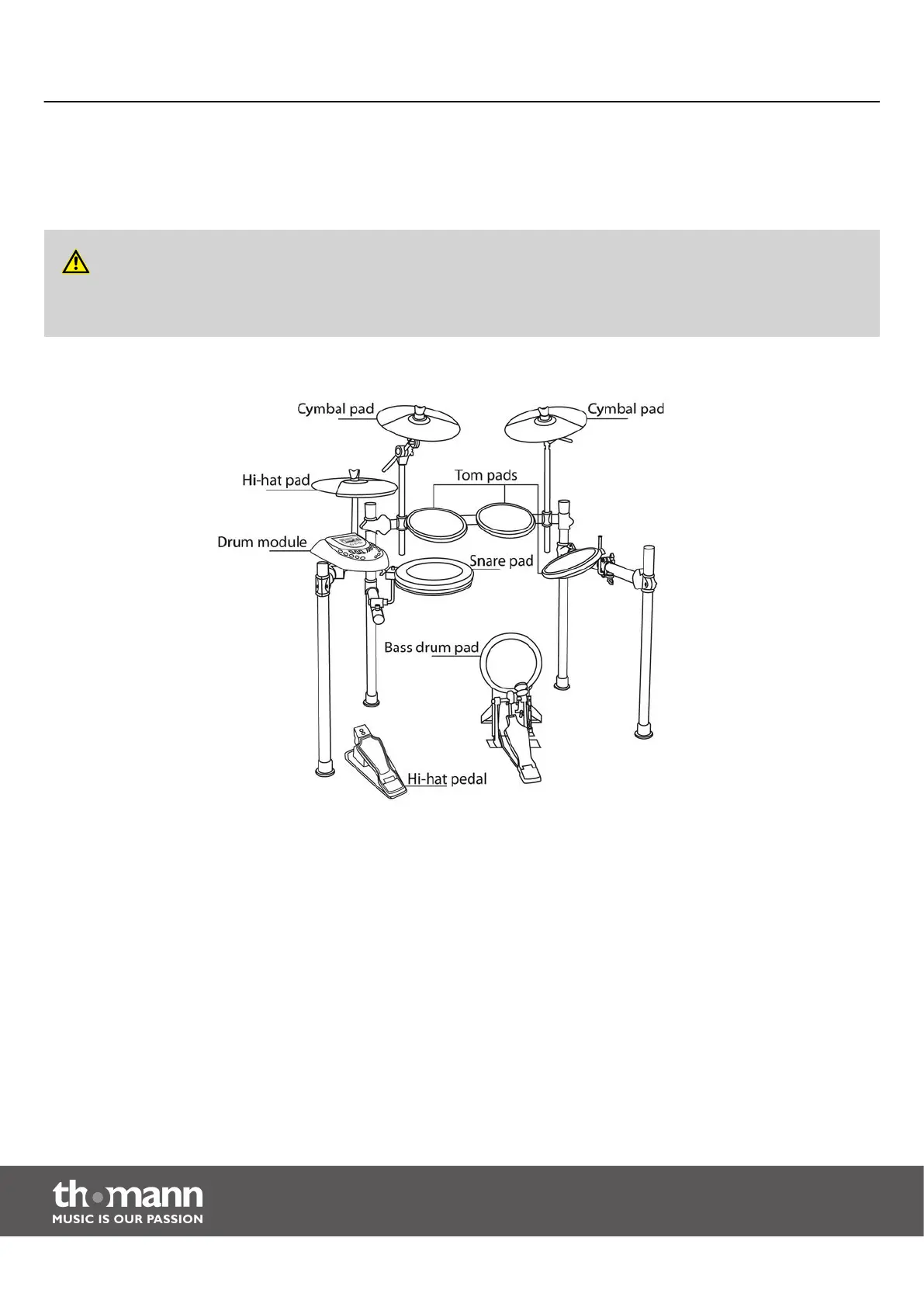 tions of the pads, cymbals, etc. are shown in the illustration below.