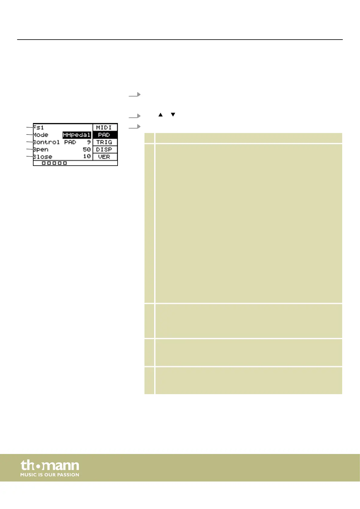 … ‘9’ that the footswitch should control in ‘HHpedal’ or ‘PAD’ mode.