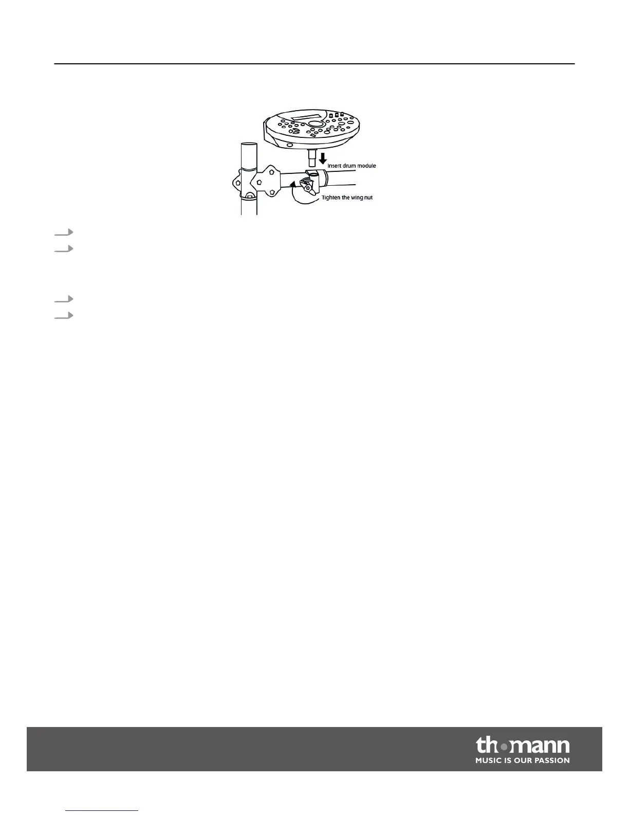 Position the bass drum pad centred under the rack. Position the bass drum pedal centred in front of the pad.