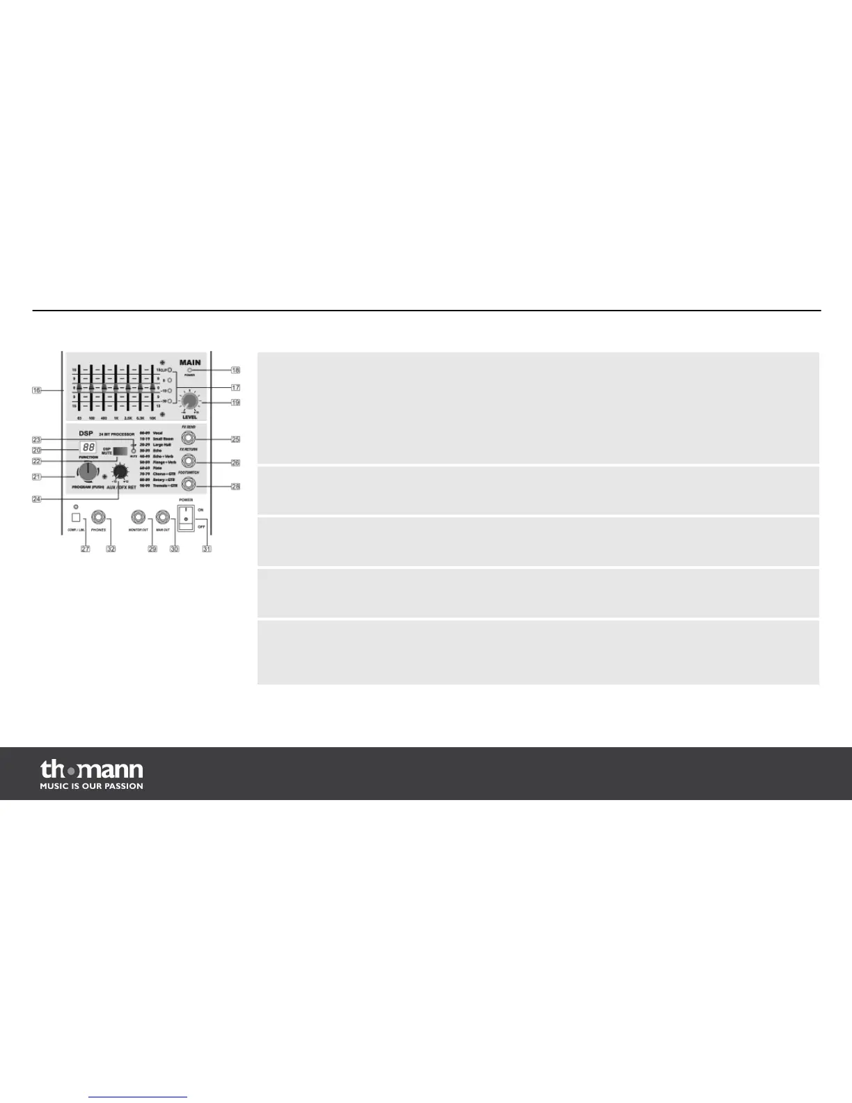 Your PM800 features a special 100-preset digital effects section. You will read more about