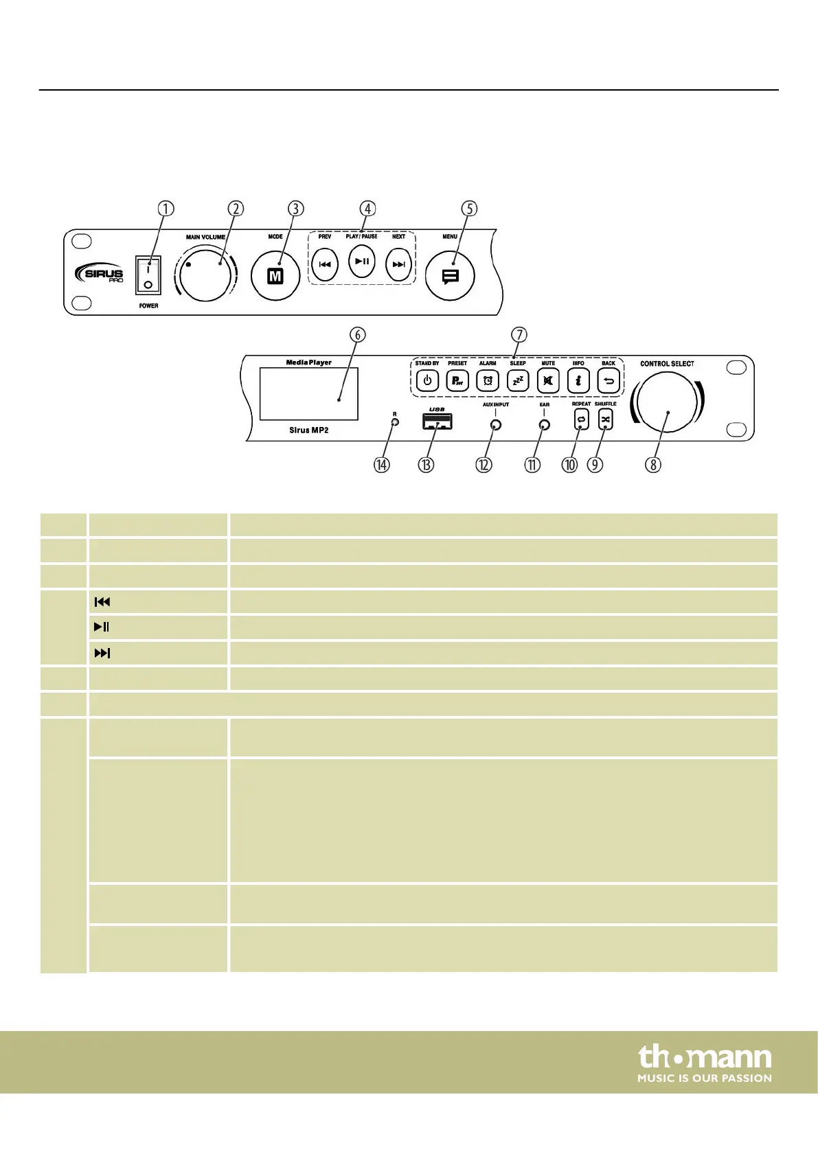 2 [MAIN VOLUME] Rotary control for adjusting the volume